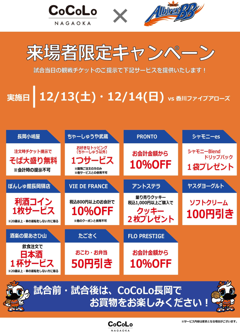 CoCoLo長岡では、12月の試合開催日に、「新潟アルビレックスBB×CoCoLo長岡来場者限定キャン…