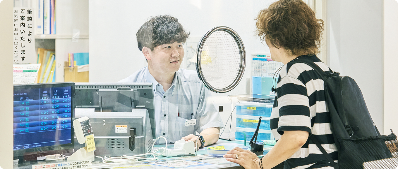 きっぷのご利用方法や乗り換え等について丁寧なご案内を行い、お客さまの快適で安心なご利用を支えています。